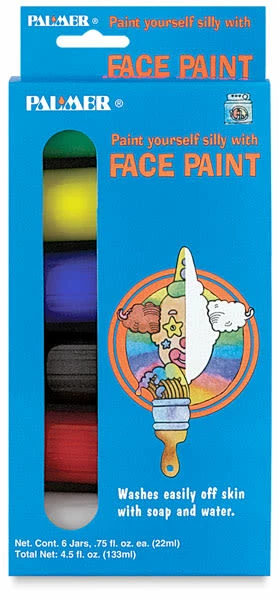 Children can explore, experiment, and develop their creativity with Palmer’s lively Face Paint colors. Non-toxic and washable, Palmer’s face paints are safe for use on skin. Dried out paint can be reconstituted by simply adding water.