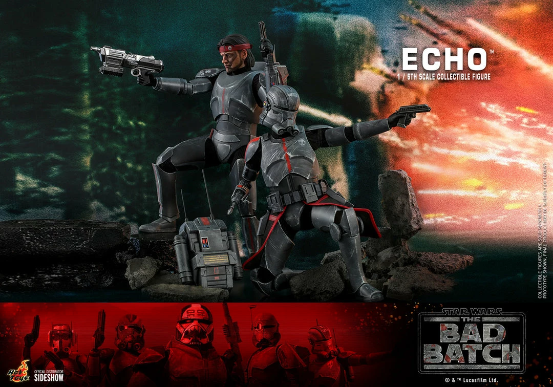 The highly accurate collectible figure features skillfully crafted and finely detailed recreation of Echo’s armor and helmet, interchangeable head sculpt with great likeness, the character’s unique cybernetic parts including a variety of interchangeable mechanical right arms, a military backpack, blaster, and a display base!