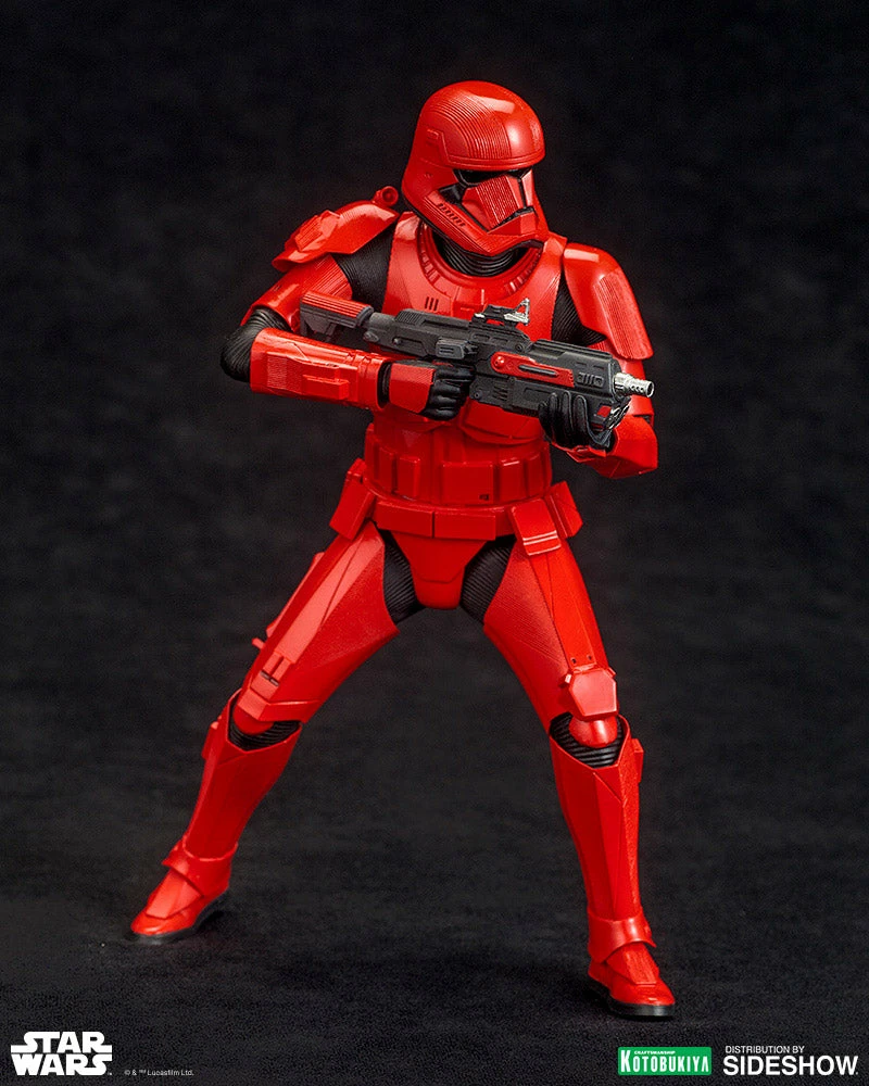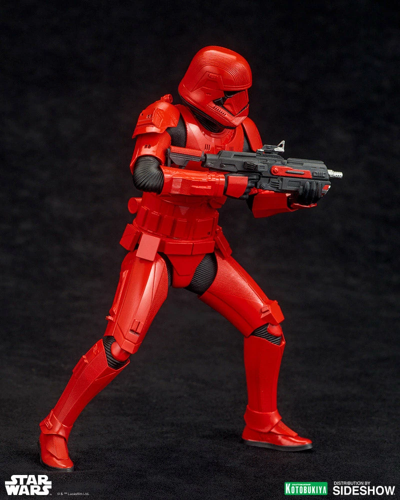 The newest addition to Kotobukiyaās ARTFX Star Wars statue series features the all-new Sith Troopers fromĀ Star Wars: The Rise Of Skywalker,Ā Episode 9 of the Skywalker Saga, in a two-pack collection. The blaster rifle and mega blaster with integrated grenade launcher are included with the Sith Trooper Two-Pack and can be used to reenact scenes from the movie.