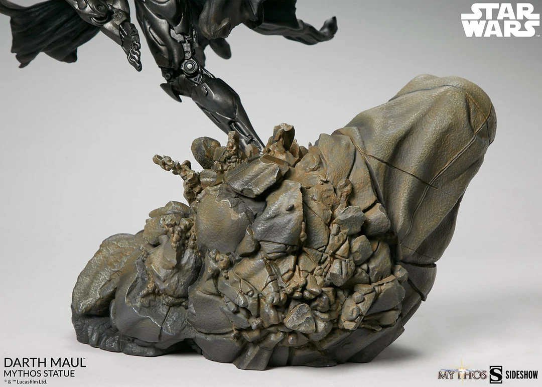 The Darth Maul Mythos Statue measures 23.5″ tall, as the hateful Zabrak warrior leaps from the crumbling ruins of a Sith temple monument, wielding his famed dual-bladed red lightsaber. In a savage rage, Maul prepares to enact his revenge on the accursed Jedi Order, the ones who took his legs and left him near death.