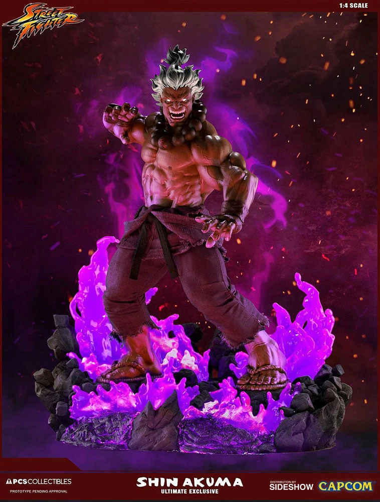 The 10th Anniversary Shin Akuma Ultimate Exclusive 1:4 Mixed Media Statue is the pinnacle of Street Fighter collectibles. This exclusive piece comes with more swap-out pieces than any Pop Culture Shock Collectible before it.