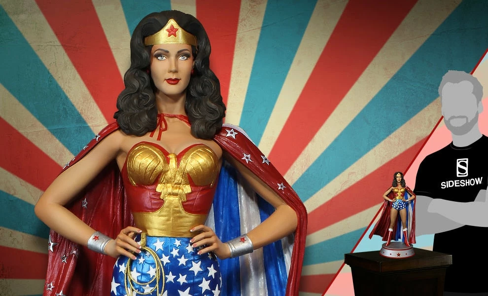 Sideshow and Tweeterhead are proud to announce the newest addition to the DC Maquettes – the Wonder Woman (Cape Variant)! Based on the likeness of Lynda Carter, known for her iconic portrayal of Wonder Woman.Â